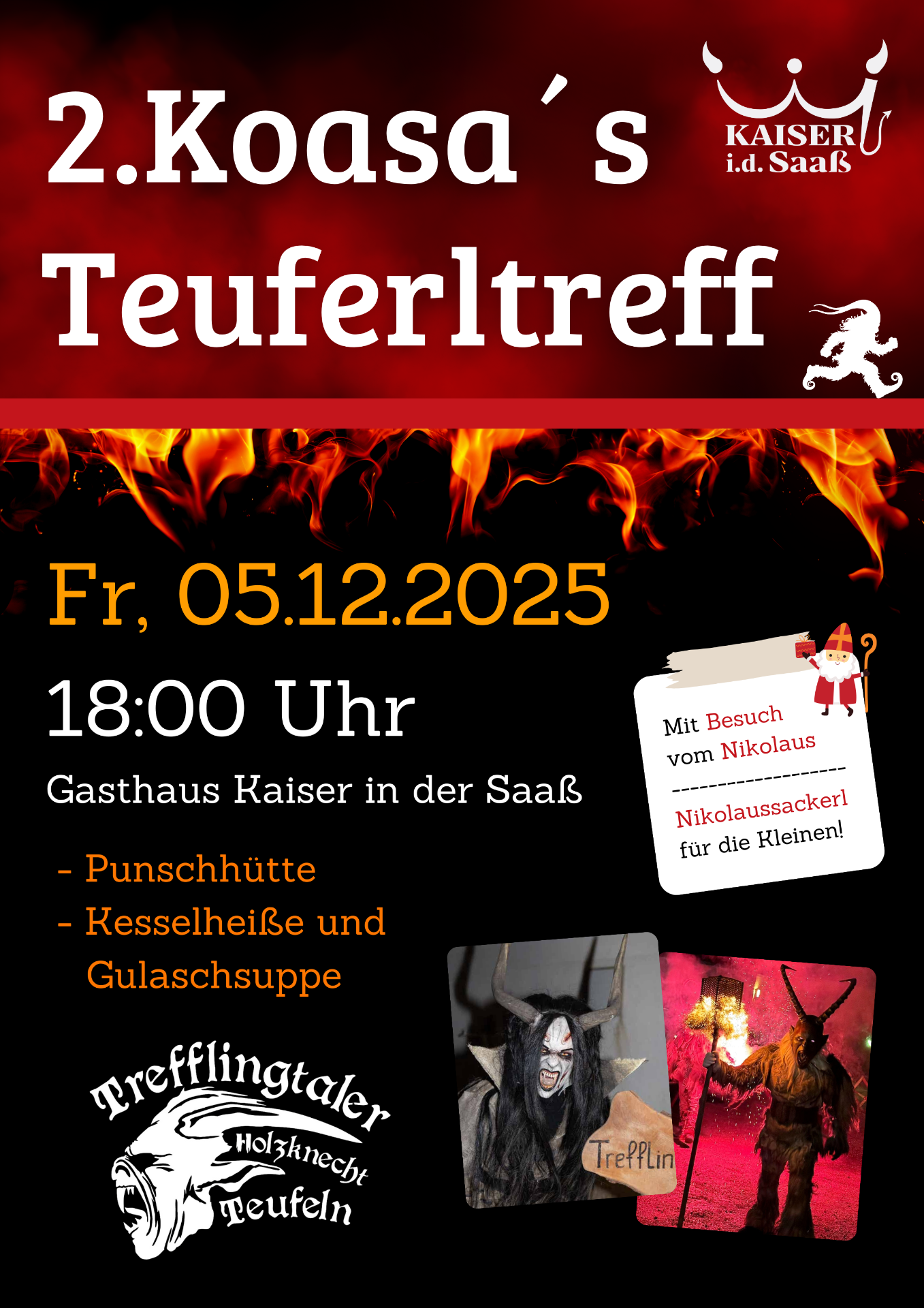 Bei unserem 2.Koasa's Teuferltreff am Freitag den 5.Dezember 2025 um 18:00 Uhr, wir freuen uns auf euer Kommen! 👺🔥